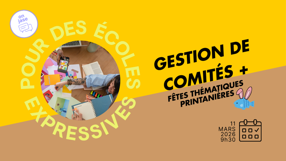 Ils sont au cœur de la vie parascolaire, mais on le sait… les comités, c’est parfois tout un casse-tête à gérer! 🤯 Cette table ronde virtuelle vous invite à échanger vos idées, vos outils, vos bons coups et vos réflexions autour de la gestion des comités en contexte parascolaire. Mobilisation, encadrement, partage des rôles, motivation, suivis, reconnaissance…voici quelques exemples de ce qui pourra animer vos discussions.