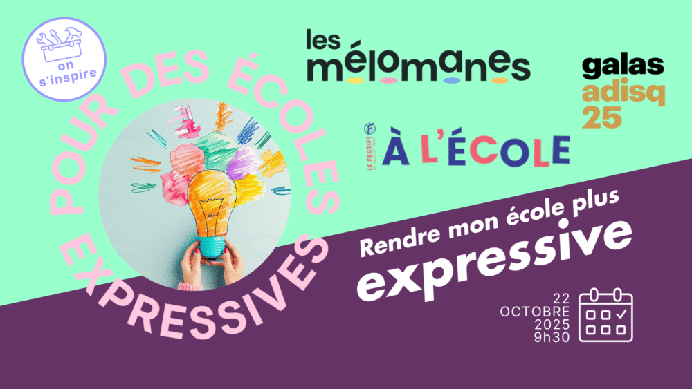 Pour découvrir des idées inspirantes, poser vos questions directement aux organismes invités, et repartir avec des pistes concrètes pour faire de votre école un milieu encore plus vivant, vibrant… et expressif!