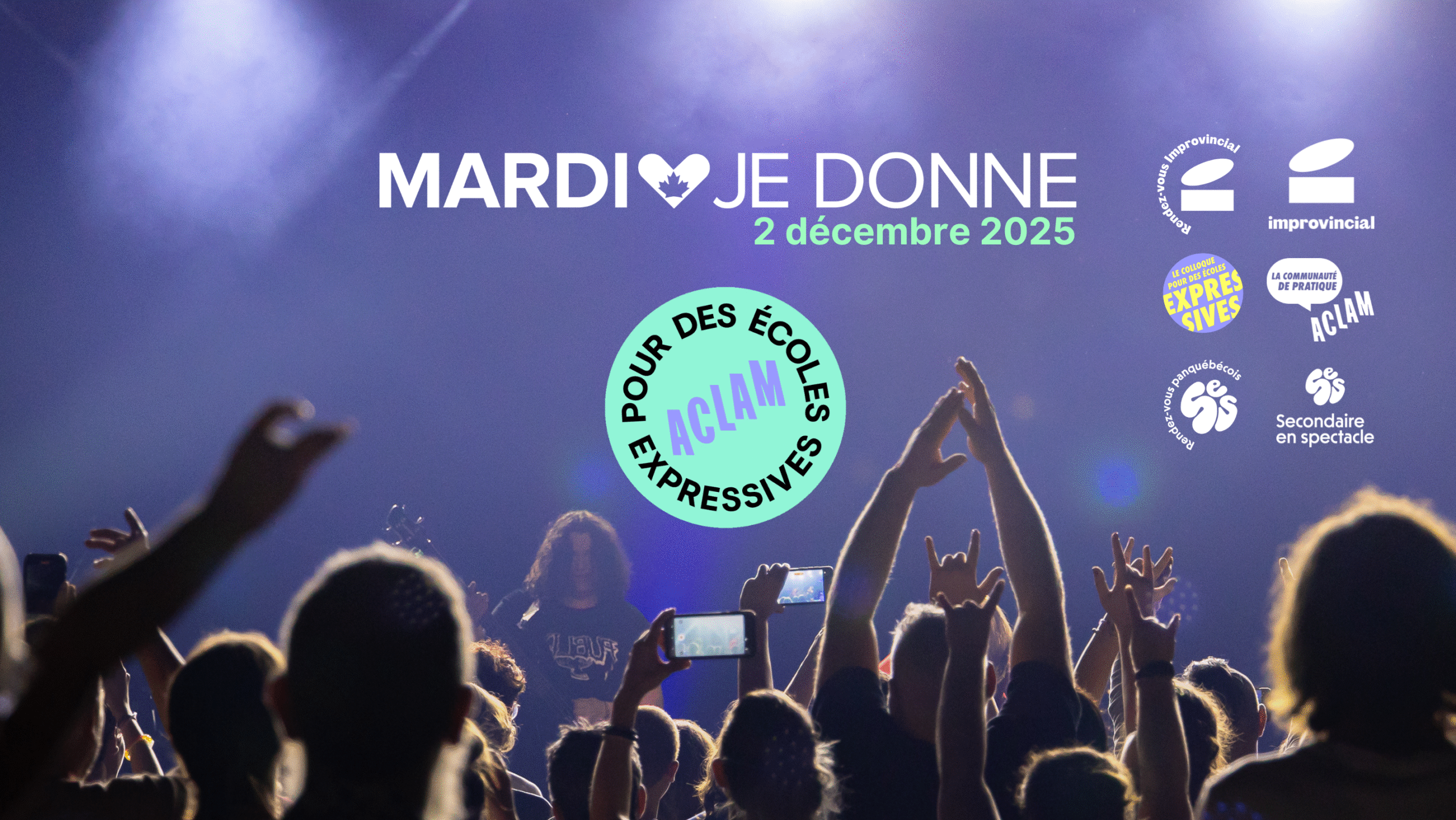 Le mardi 2 décembre, ACLAM vous invite à participer à Mardi je donne, le plus important mouvement mondial dédié à la générosité. Appuyer ACLAM, c’est donner des ailes à un organisme à but non lucratif qui aide près de 300 écoles secondaires à offrir plus d’activités parascolaires artistiques au quotidien.
